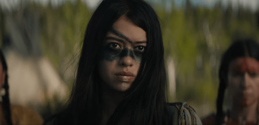 The first Predator from 1987 is slightly a product of its time but what made it have a profound legacy is the themes it dives in and what makes a great action movie special. It was a full on assault movie that birthed an action legend with Schwarzenegger’s Dutch and so many other unique qualities. Prey goes for a much grounded and serious approach by diving deeper into the themes of man vs nature, conflicts with the unknown, human instinct and persistence. All of theses themes are expressed beautifully from the character driven moments, specifically from the performance of Amber Midthunder. She’s phenomenal in this movie and by showing the range, emotion and the incredible stunt work she puts in the action sequences, this role of hers is destined to make her a bigger and more utilized talent. For a character that speaks more with action and less verbally, Amber Midthunder steals the show. Dakota Beavers, as the older brother of Naru, is also another scene stealer in this movie and it shows that this is more of a character focused Predator movie than any one before it.
